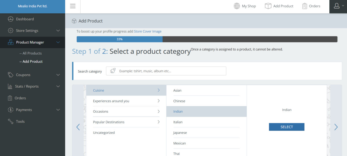 ⚠️ Note: Once a category is selected, it cannot be changed later.